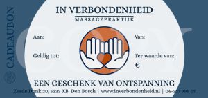 Wil je iemand verrassen met een uniek en ontspannend cadeau? Kies dan voor een cadeaubon van Massagepraktijk In Verbondenheid.